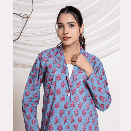 Guldasta Blue Cotton flex Fitted Waist CoatRegular price Rs. 450.00Regular priceUnit price / per-