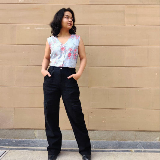 Guldasta Blue Cotton flex Straight PantsRegular price Rs. 699.00Regular priceUnit price / per-