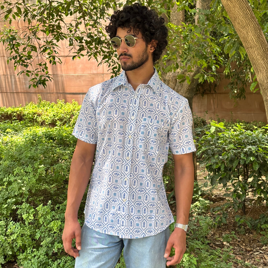 Zig Zag printed Full Sleeves Cotton Men Shirt