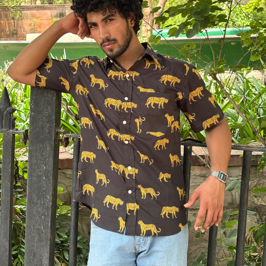 Crepe Jaipuri Tiger print short sleeve Shirt