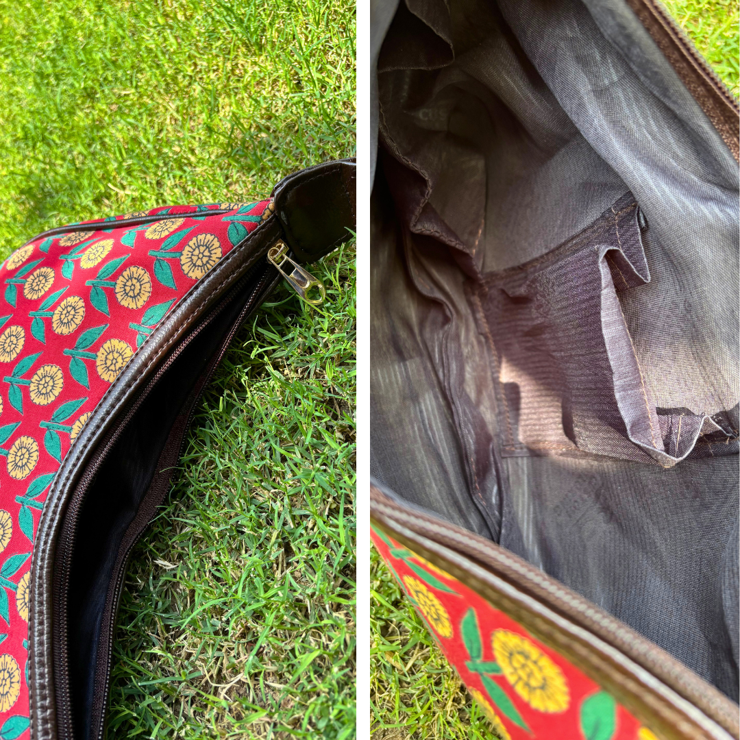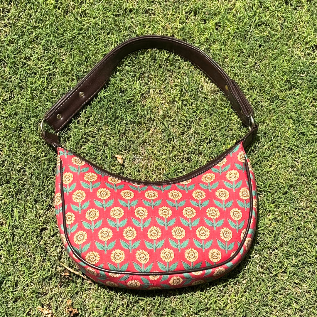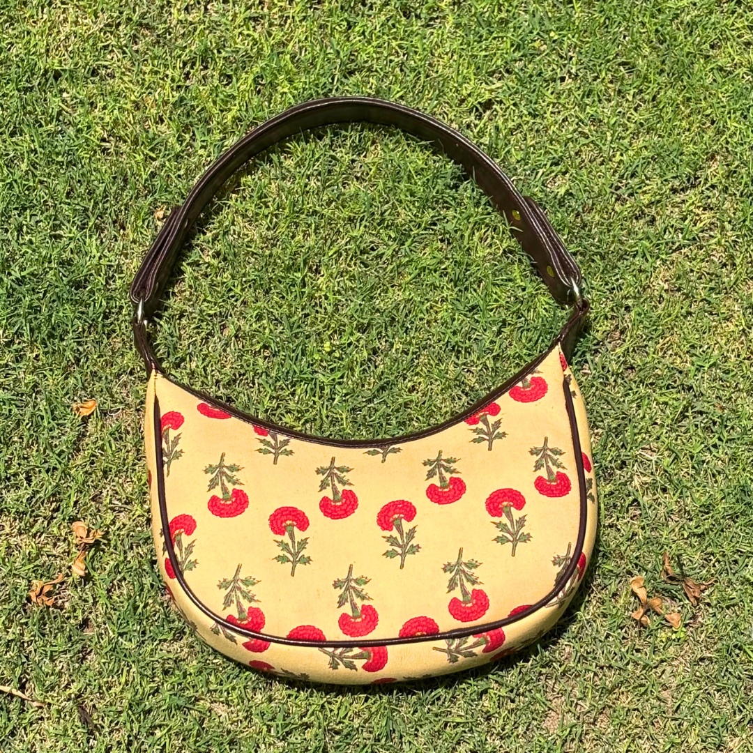 Embrace elegance with our Floral Chand Hand Bag, featuring a distinctive crescent moon shape adorned with unique prints you won't find elsewhere. The spacious main compartment secures with a zipper and includes waterproof ragzin lining, providing ample room for all your essentials while keeping them protected. This beautiful accessory combines style and practicality for your everyday needs.